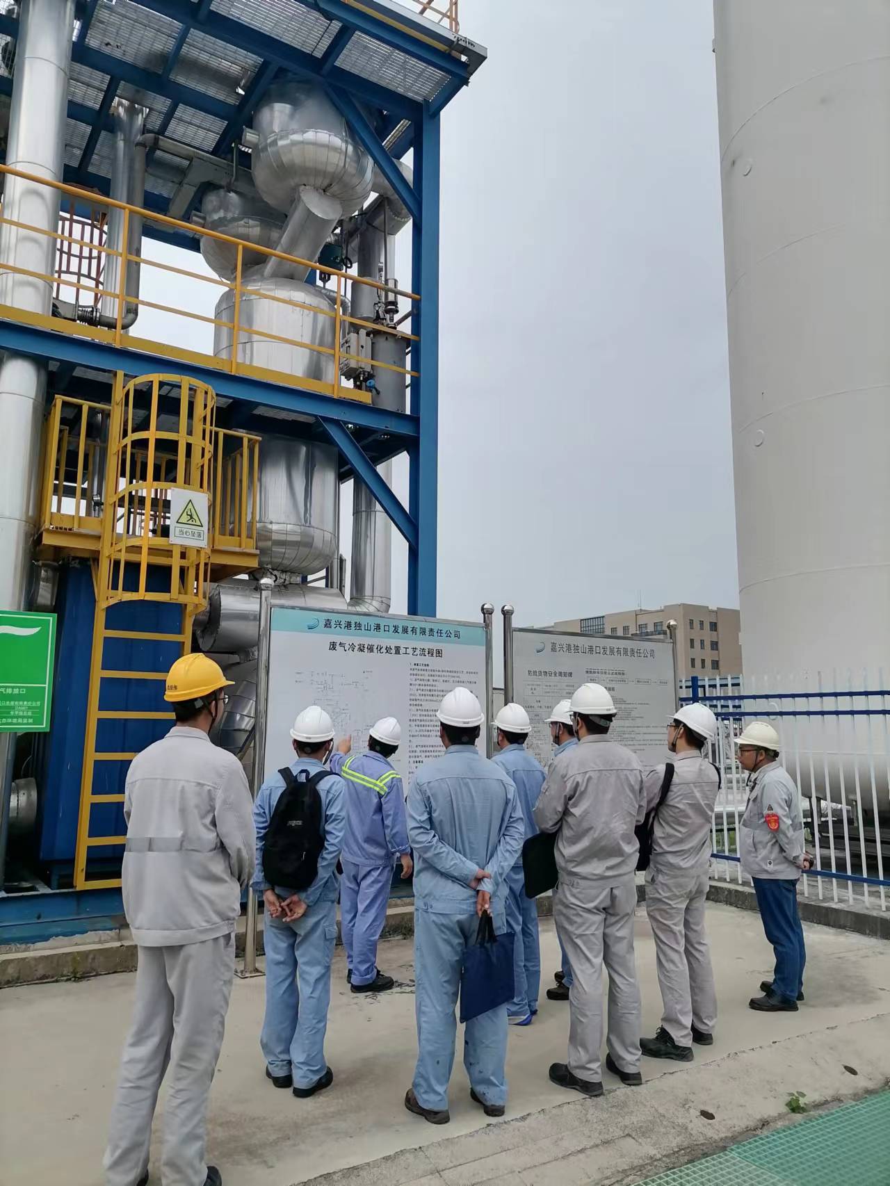 2023年9月20日,镇海炼化组织了炼化发展部、安环部相关人员以及算山油库码头和设计院考察了嘉兴独山港两套废气装置,该装置采用了液氮冷凝-催化氧化工艺,由宁波中瑞环保科技有限公司设计施工安装调试,得到了考察团的认可及好评。
